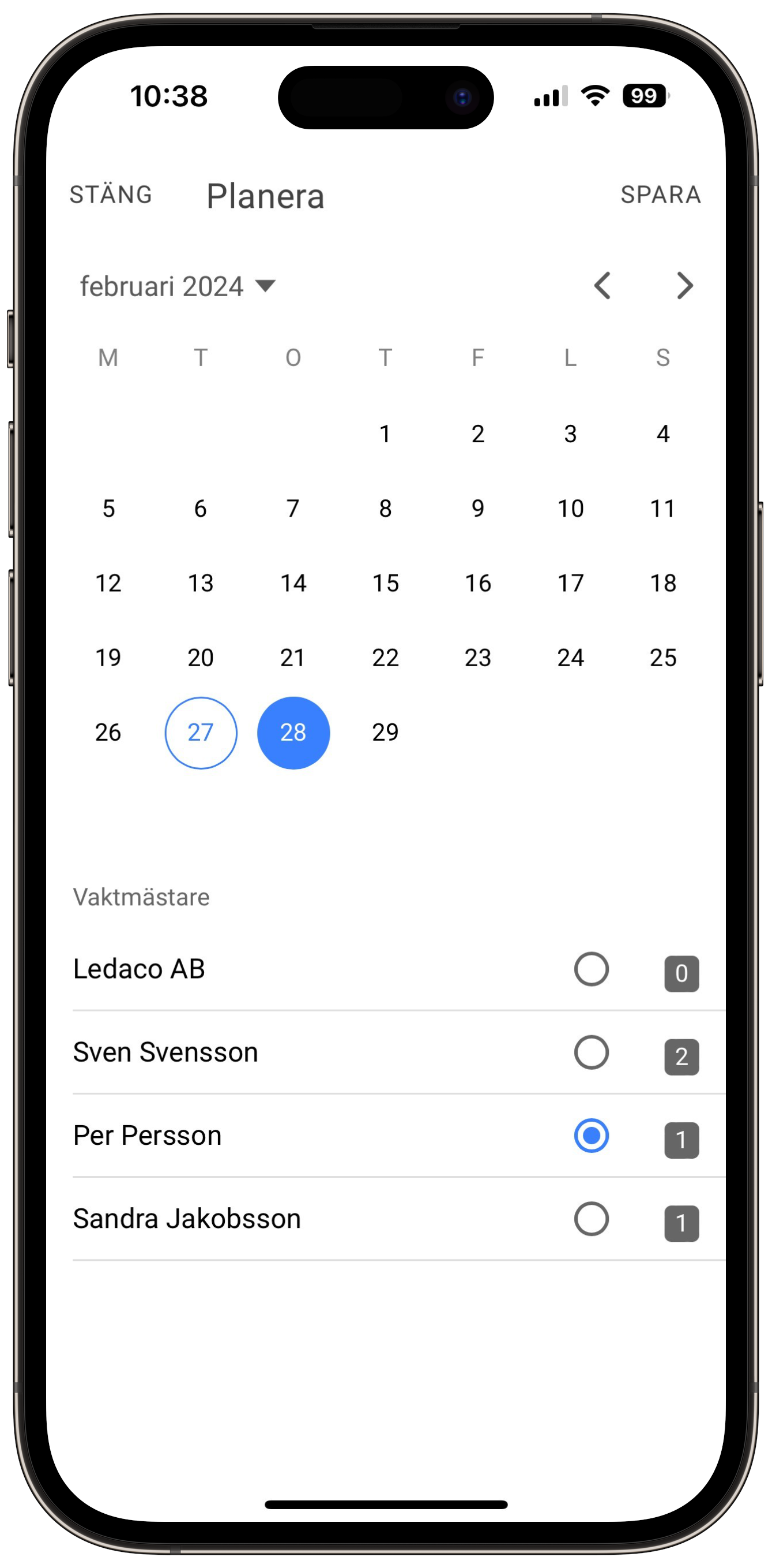 I appen kan administratörerna se alla nya ärenden och planera dessa till vaktmästarna.