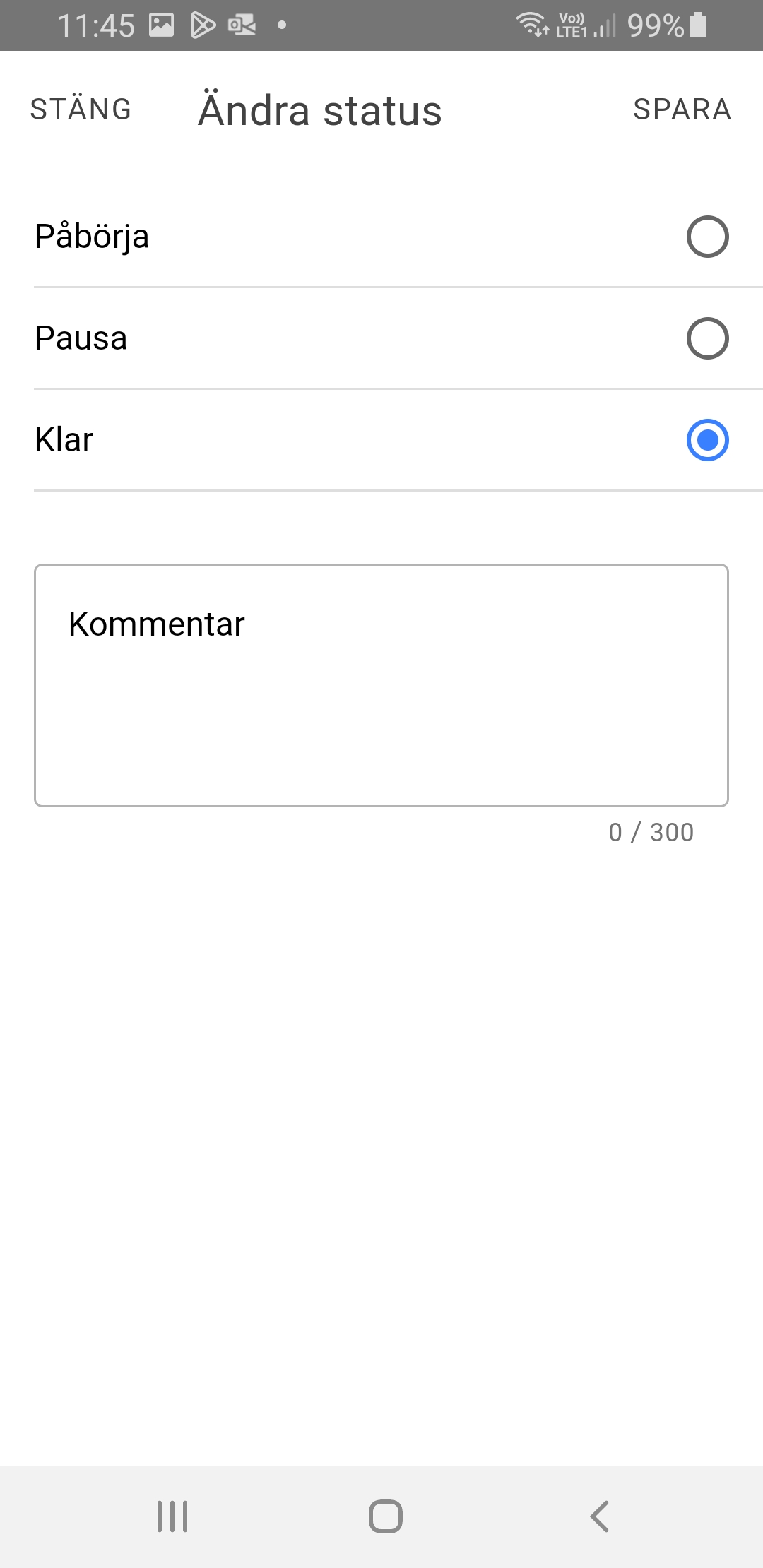 När du går till ett ärende och klickar på knappen "Ändra status" öppnas en dialogruta där du kan välja en ny status för ärendet. Efter att du har valt den önskade statusen, kan du spara dina ändringar för att uppdatera ärendet.