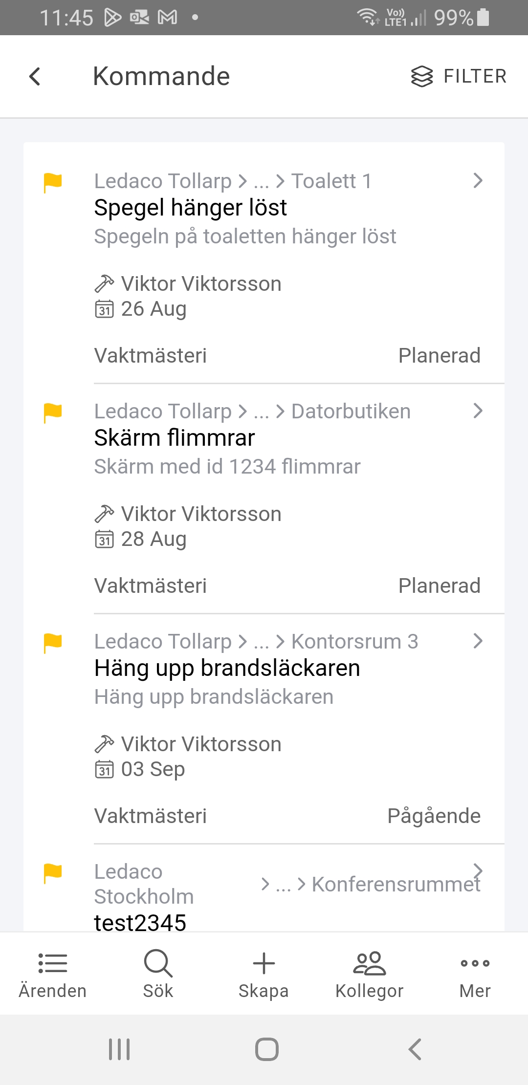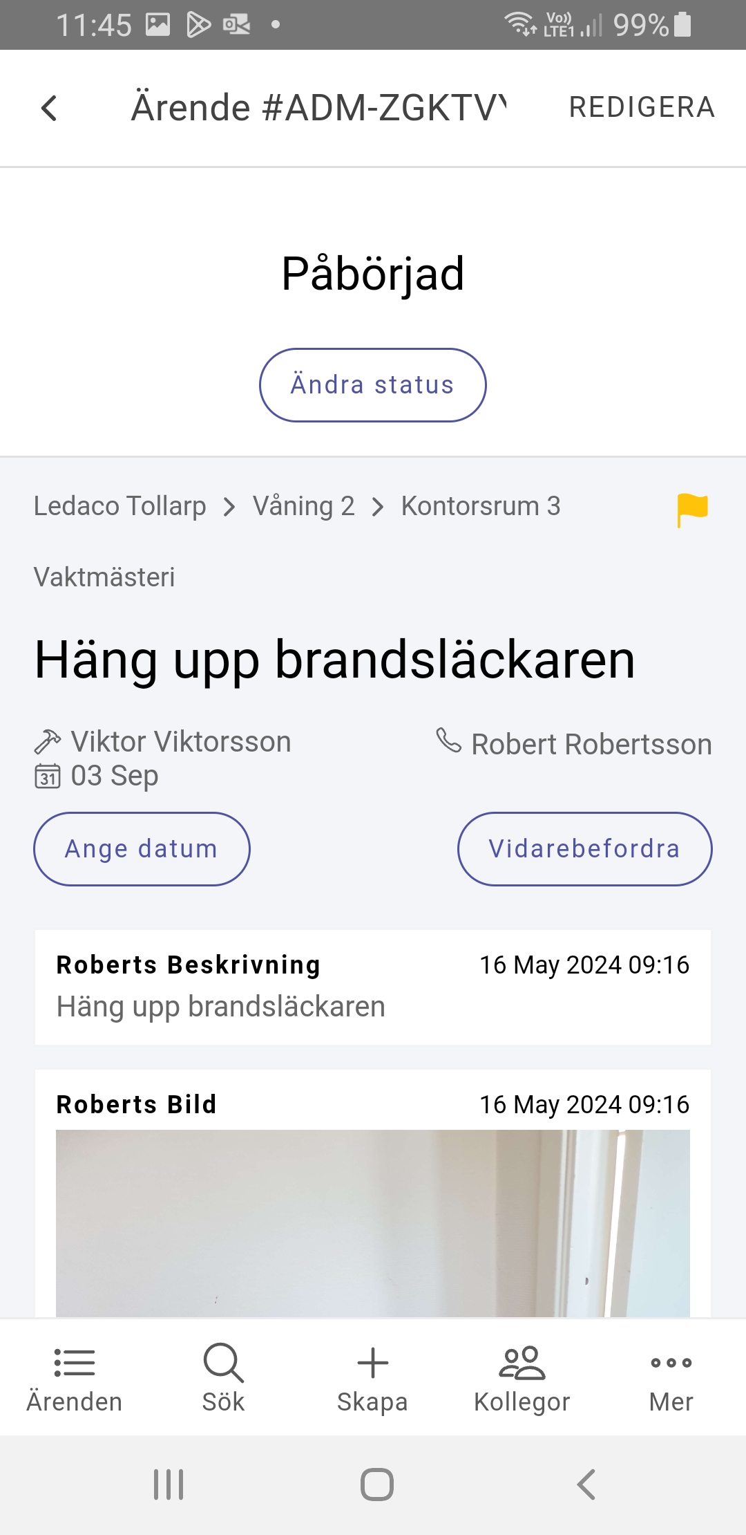 Från ärendelistan kan du klicka på ett specifikt ärende för att se all information om det. Detta inkluderar detaljer som beskrivning, status, ansvarig utförare och eventuella kommentarer, vilket ger dig en fullständig översikt över ärendet.