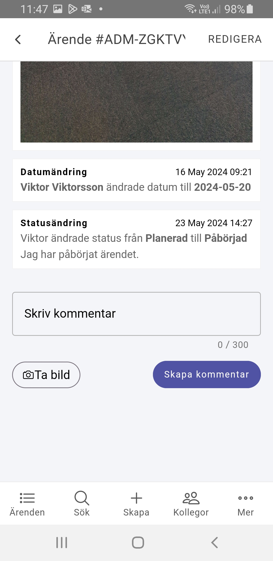 När du har öppnat ett ärende, kan du skrolla ner för att hitta sektionen där du kan skriva en kommentar. Här kan du lägga till information om ärendet, vilket hjälper till att hålla alla informerade om viktiga detaljer.