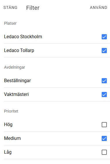 Filtrera på prioritetNu går det att filtrera ärenden på prioritet. Det innebär att du kan välja vilka prioritetsnivåer du vill se och endast visa ärenden som matchar dina val, vilket gör listan mer överskådlig och lättare att hantera.