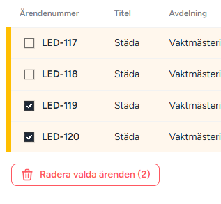 Radera ärendenEn ny funktion har nu lanserats som gör det möjligt att radera ärenden direkt i systemet. Administratören kan enkelt ta bort ärenden som inte längre är relevanta eller felaktigt registrerade.