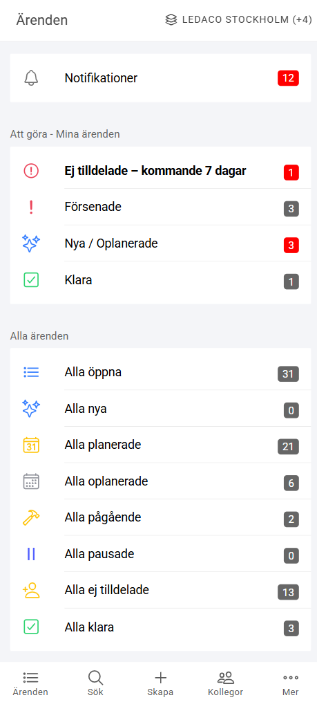 Antal oplanerade ärendenAntalet oplanerade ärenden visas även när listan är kollapsad för bättre översikt.